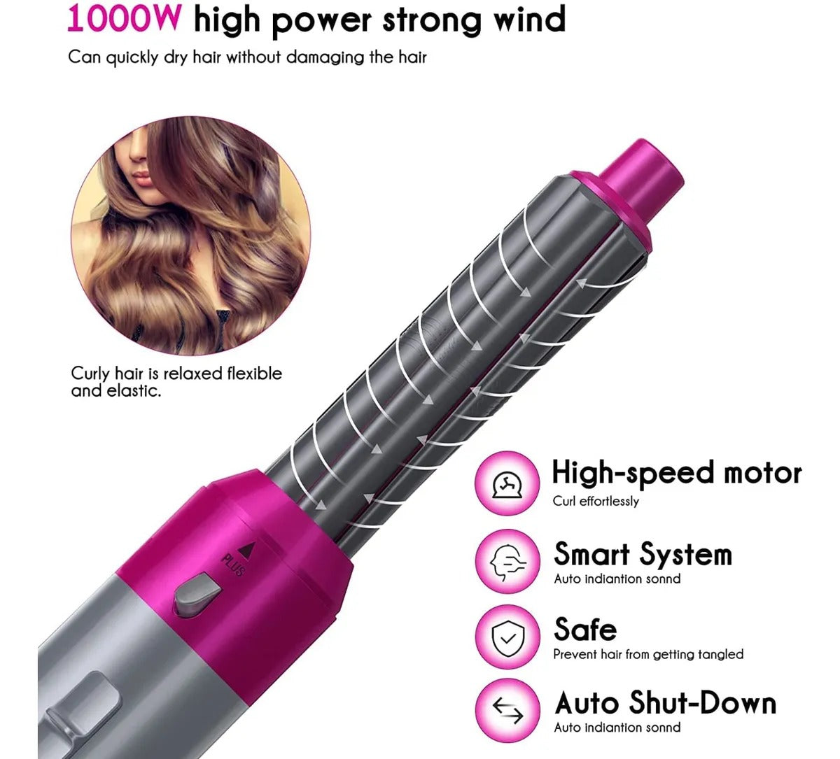 Cepillo Alisador Secador Multifuncional 5 en 1: @Está equipado con 5 cabezales de cepillo para alisar, dar volumen y rizar. Ya sea que lo use como secador de pelo, estilizador de cabello, voluminizador o alisador, el secador de pelo será su nueva herramienta de peinado favorita para crear. Estilo de salón suave como la seda desde la comodidad del hogar. que hacen que alisar, rizar, dar volumen y masajear el cuero cabelludo sea muy sencillo. @El flujo de aire caliente de doble uso húmedo y seco reduce el daño del cabello. @Material conductor térmico de cerámica turmalina completo calentamiento uniforme. 5 cabezales de instalación reemplazables, una tecla, liberación y reemplazo. @Multifunción se puede utilizar como plancha de alisado de rizador de secador de pelo. Ahorra tiempo de calentamiento rápido. Interruptor de una tecla de velocidad y temperatura ajustables del viento. Puede girar la línea de cola 360 grados, de resistencia al desgarro. @@REDUCE EL FRIZZ Y LA ESTÁTICA: use diseños de calefacción de cerámica, viento a temperatura constante, bloquee la humedad del cabello, mantenga su cabello suave, reduzca el frizz y la estática. El cabezal de peinado es reemplazable, fácil de reemplazar, ayuda a crear un peinado de moda. modelaje de escenario, citas, fiesta, trabajo y viajes. @TEMPERATURA AJUSTABLE: niveles de calor ajustables para satisfacer sus diferentes necesidades, para que pueda hacer diferentes peinados, calentar rápidamente y puede moldear fácilmente su cabello en 10-20 minutos. El control de temperatura le permite elegir el más adecuado para su tipo de cabello. Calor alto para cabello grueso, calor para cabello fino / dañado, calor bajo para peinar, ajuste flexible para fijar su hermoso peinado. @@Ajuste de temperatura: @@Nivel 1: Temperatura moderada para un secado y peinado suaves (aproximadamente 61-63 c) @Nivel 2: Alta temperatura para un secado y peinado Rapidos (aprox- 96-98C) @Nivel 3: Es la más Alta temperatura para secado rápidos (aproximadamente 136-140 C ) @@TECNOLOGÍA IÓNICA: Los iones negativos liberados por el cepillo de aire caliente pueden aumentar la humedad del cabello, esto ayudará a acondicionar tu cabello y nutrir el cabello dañado, reduciendo así las puntas abiertas y los nudos. Una opción fantástica para el cuidado de tu cabello en salud y personal. Puedes convertirte en fashionista en cualquier momento y lugar. @@Práctico y portátil: este cepillo de aire para el cabello es ligero, fácil de llevar, fácil de manejar y perfecto para tu muñeca. Te permite crear resultados dignos de salón. Versatilidad Proporciona estilo y excelentes resultados para todo tipo de cabello. Este es un gran regalo para mujeres y niñas. @@El paquete incluye: @@1 Máquina principal @5 Cabezal de instalación reemplazable @formado por:2 Barriles de 30mm1 cepillo alisador firme1 cepillo de limpieza de filtro1 accesorio sopladorGracias por confiar en nosotros. Aquí está nuestra política de garantia:Duración: 10 días desde la entrega.Condiciones: Cubrimos solo daños que afecten el funcionamiento o integridad del producto. No aceptamos devoluciones por otros motivos.Procedimiento: Contáctanos inmediatamente si hay problemas. Necesitamos evidencia visual( fotos y videos) para el reclamo.Resolución: Evaluaremos y ofreceremos reparación, reemplazo o reembolso según corresponda.Proceso: Envía la evidencia al equipo de atención al cliente con detalles de compra.Contacto: Para consultas, contáctanos sin dudarlo. Gracias por elegirnos.Para hacer válida tu garantía, ten en cuenta que el producto debe llegar defectuoso o incorrecto. Debe devolverse en las mismas condiciones en que fue entregado.Nulidad de Garantía: La garantía es válida si el producto no ha sido modificado, manipulado, utilizado incorrectamente, dañado por terceros o agentes externos.